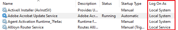 Every service relies on an associated Service Account to run. This account provides the necessary identity and permissions for the service to operate. The Service Account can either be a local machine / user account, e.g. “Local System” – or a domain user used as service account, e.g. “ServiceAccountSMB”.
