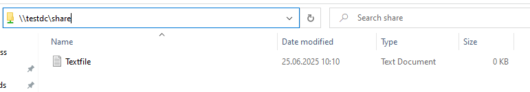 Next, we’re going to use our TGT to receive the Service Ticket for accessing a SMB Share. Since all of this happens in the backround, all we need to do is open an SMB connection to the share via its Hostname (Since Kerberos doesn’t work via IPs by default).