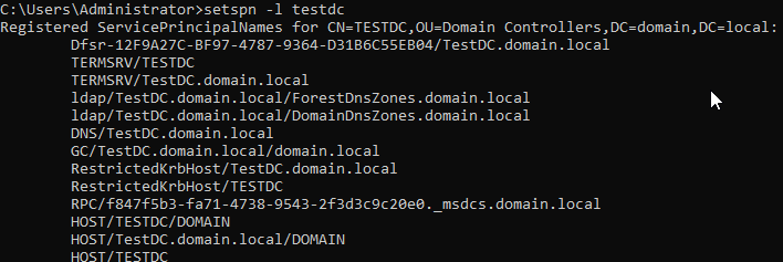 setspn -l testdc